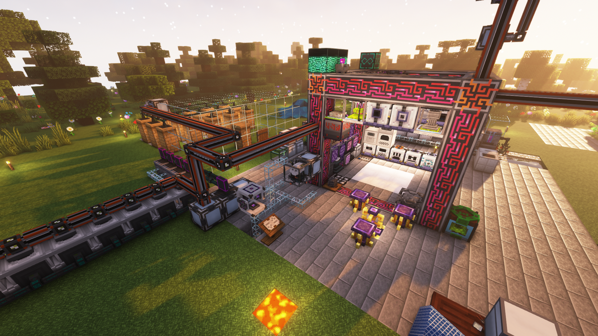 Огромное количество собственных разработок, включая механизмы быстрого крафта способные крафтить тысячи единиц предметов в тик, которые полностью интегрированы в МЭ сеть и дробят/жарят/варят прямо в ней. Забудьте про крафты по несколько часов солнечных панелей последних тиров, к которым вы привыкли на других проектах, у нас можно крафтить солнечные панели за считанные секунды, благодаря переписанной нами логике работы мода AE2.